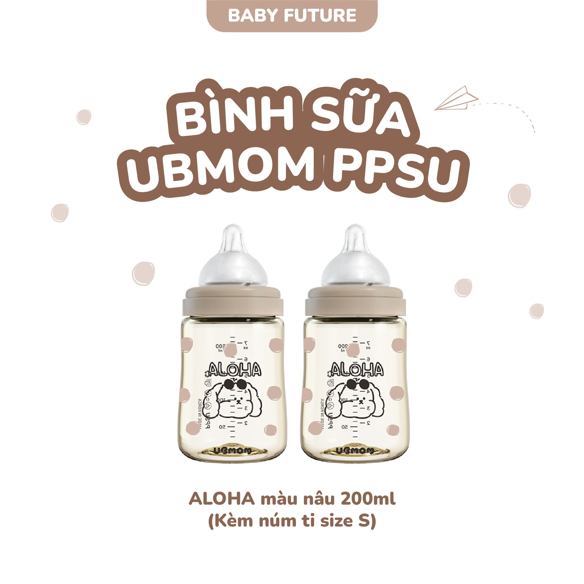 Bình sữa PPSU UBMOM hoạ tiết LIMITED ALOHA màu nâu/ BONJOUR màu be 200ml